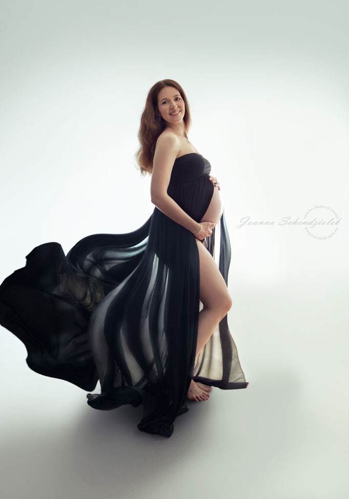 In meinem Studio habe ich Kleider und Stoffe, welche bei Babybauch Fotoshootings besonders hilfreich sind. Am besten ziehen Sie bitte hautfarbige oder weiße Unterwäsche an.